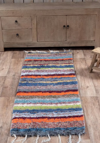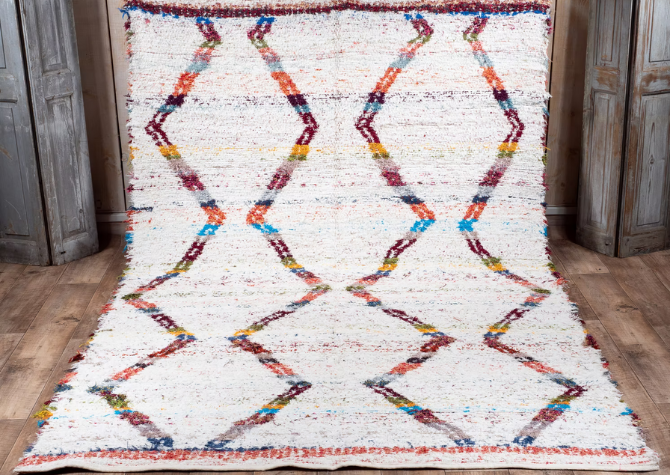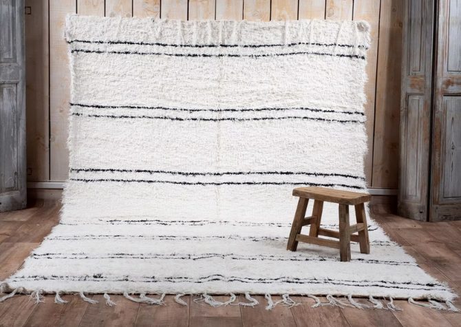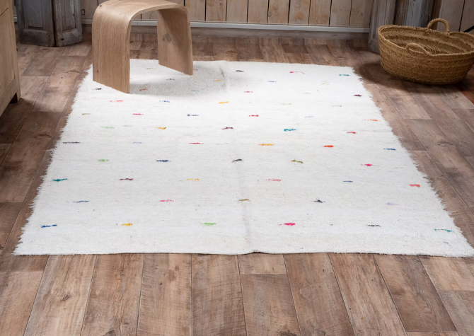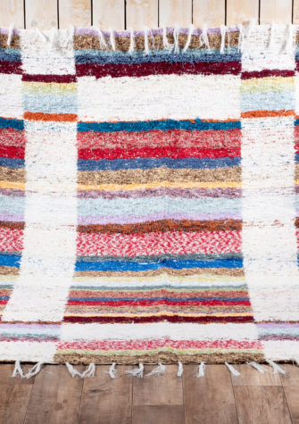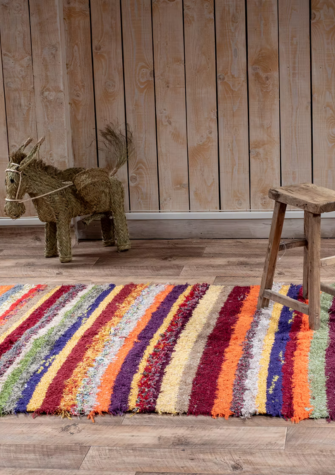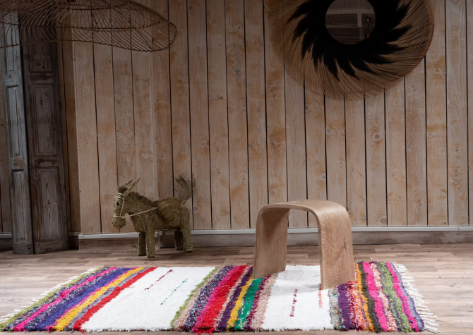 Les couleurs très actuelles et les motifs ne font pas oublier la grande qualité des tapis, entièrement tissés à la main en Andalousie par des artisans.